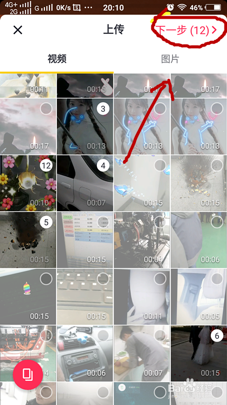 我们点击右下角的上传,进入上传的界面,之后选择多段视频。