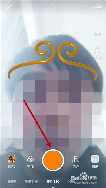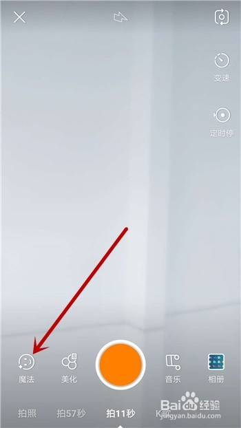 我们需要利用快手的魔法,在快手里点击右上角的【拍摄】。