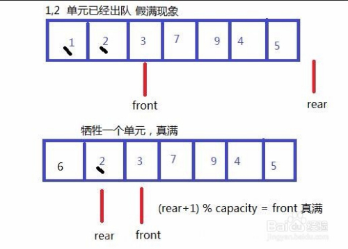 判定队列是否为满的前提为:rear是否等于m,若是等于则队列已满。