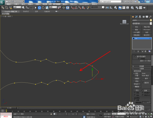 打开3Dmax2012软件,点击【建立】-【图形】-【线】,在作图区域绘制一个自界说图案。点击右边工作区中的【点】图标,选中图示图案上的点,将其进行光滑圆化处置(如图所示);
