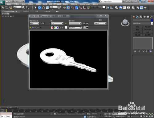 经由过程【图形归并】完美模子细节部门的处置后,点击【材质编纂器】按图示设置一个金属材质球并附加给钥匙模子。最后,点击【衬着】将建造好的钥匙模子衬着出图即可。