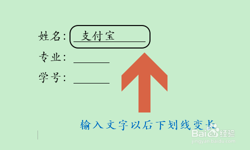 最后再次选中表格右侧部门,依旧按照以上的方式将边框只保留下边的部门,最终结果如下图一,此时再次在肆意下划线上输入文字,它的长度都是不会变长的;