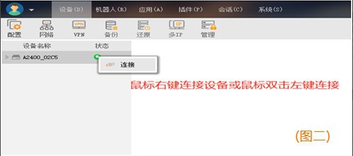 登录账号到软件界面,点毗连设备。如图