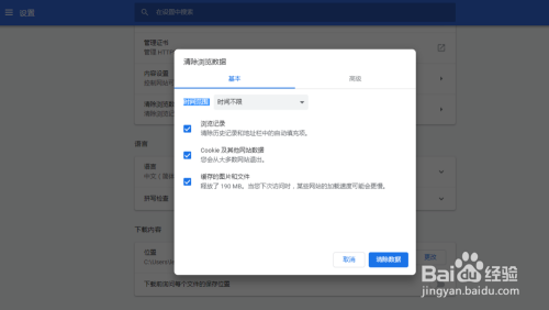 若是是利用谷歌浏览器可以在该浏览器右上角三个点,点击设置——高级——清晰浏览数据,时候规模选择时候不限