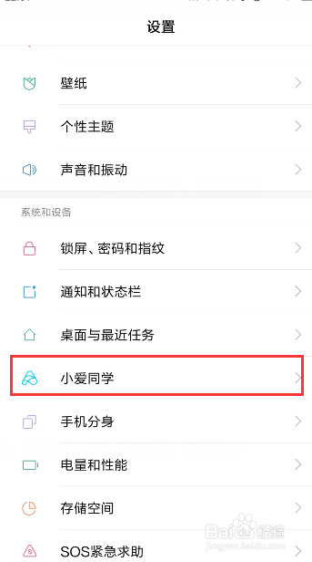 进入设置页面,找到我们熟悉的小爱同窗,如图所示