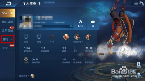 点击之后会进入到游戏账号的小我本家儿页中,在左侧找到【游戏】并点击。