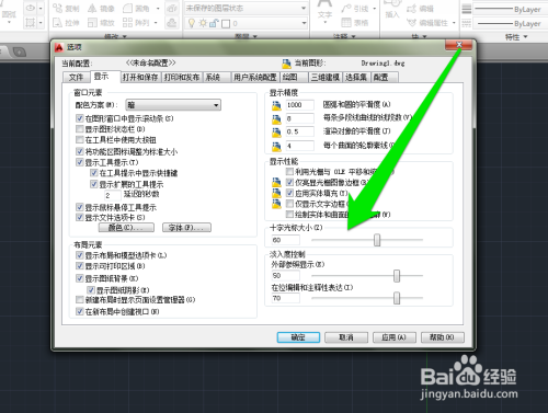 调整CAD光标的大小,调整完当作后,点击应用按钮。