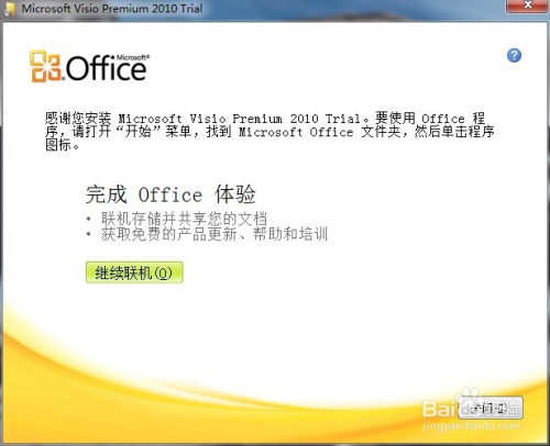 安装完当作了。会提醒联机可是visio2010不消联机,这里直接点击封闭即可。