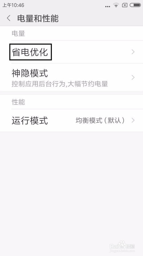 打开电量和机能的界面中点击”省电优化“选项。