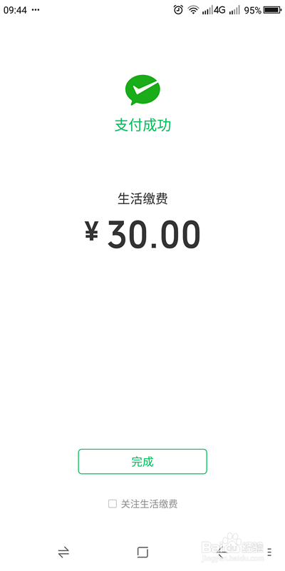 需要输入支付密码的需要输入支付密码,缴费当作功,会弹出下图,单击“完当作”即可