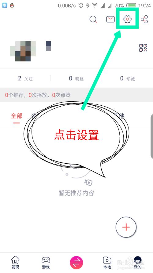 快牙可以设置不让别人淘本身的手机,在我的界面,点击右上角的设置图标。如图所示