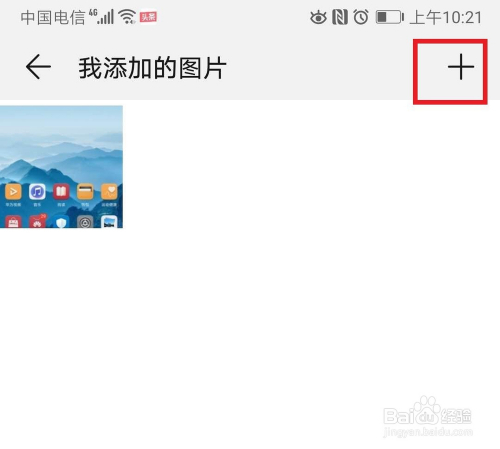在【订阅】功能页面。找见【我添加的图片】功能按钮,点击启动【我添加的图片】功能,进入【我添加的图片页面】。点击右上角的“+”号。