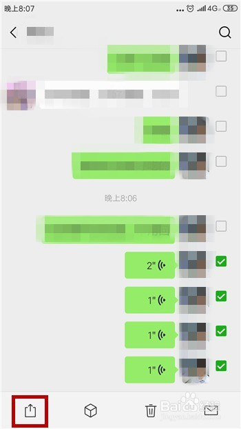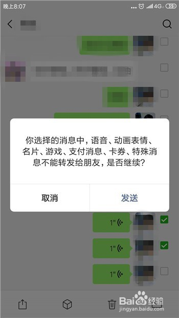 然后会呈现选择界面,我们把要转发的语音都给选上,选好后点击【转发】。