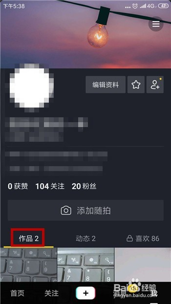 点击之后会进入小我本家儿页,在作品下方点击打开要删除的作品(小编这里有两个作品)。