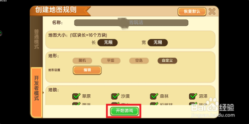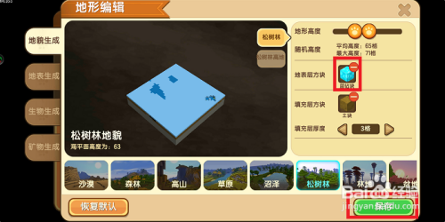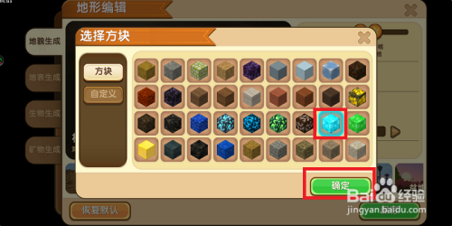 先选择一张地形图,再点击“地表层方块”旁边那个格子。