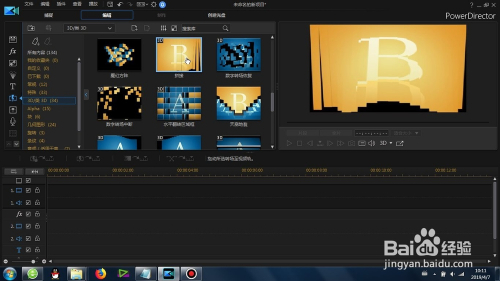 这里的“拼接”转场是在威力导演里面的-转场-3D/类3D-里面可以找到