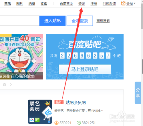 再打开的百度贴吧本家儿界面中,点击右上角的“登录”进行登录本身的账号,如下图