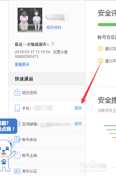 再打的页面中,我们点击“改换手机号码”,进行改换。在这里若是你想改换绑定的邮箱,方式和改换手机号码是 一样的,也可以点击绑定邮箱一栏中的“点窜”。如下图