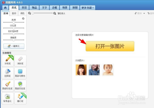 第一步:打开美图秀秀软件,单击“美化图片”。