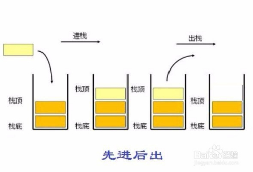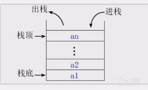 假设栈中的元素为(a1,a2,……,an),那么a1称为栈底元素,an称为栈顶元素。
