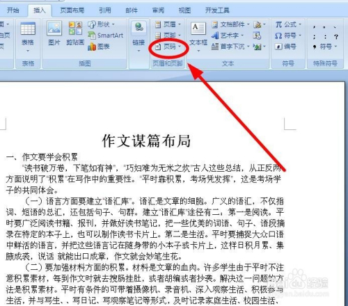 找到“页眉和页脚”功能区中的“页码”单击
