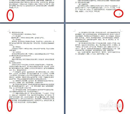 打开需要插入指定格局页码的文档。文档共四页,需要奇数页插入在右侧,偶数页插入在左侧