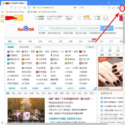 找到浏览器右上角的“菜单”按钮单击(或者利用快捷组合键“ALT+F”)