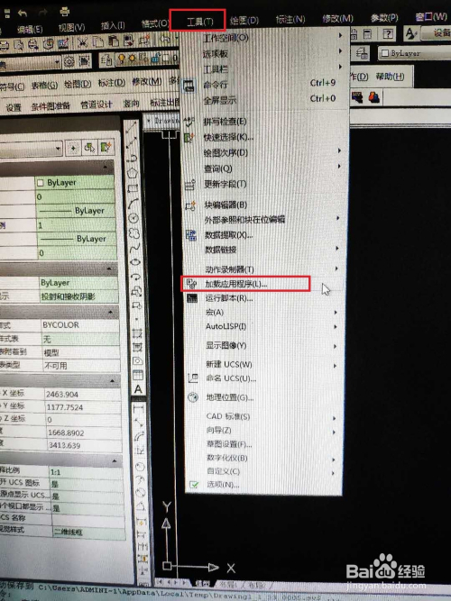 在使命菜单栏里选择“东西”-”加载应用程序“。