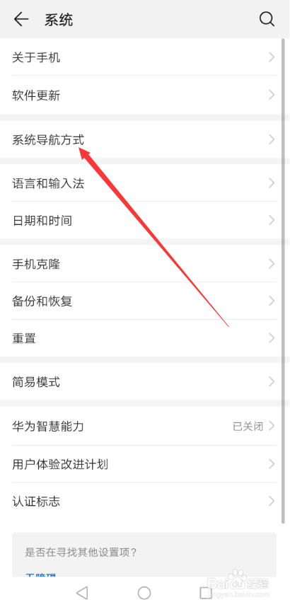 在点击华为mate20pro系统界面里的【系统导航体例】,如下图所示。
