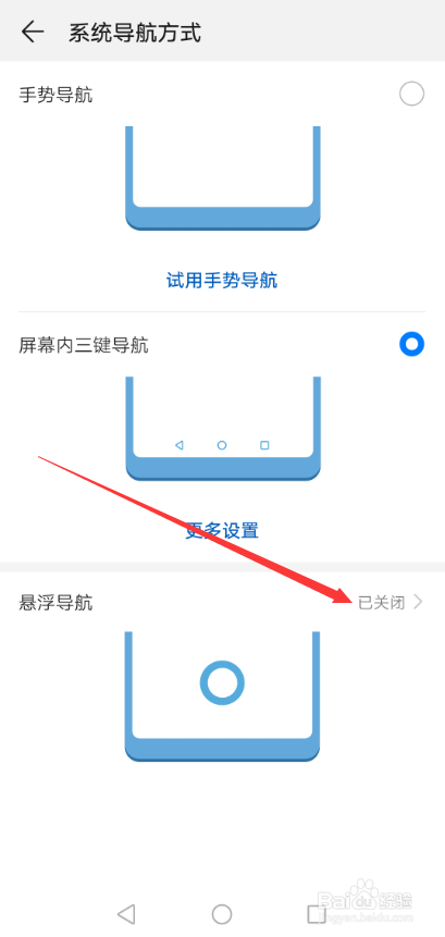 在华为mate20pro系统导航体例界面里直接点击【悬浮导航】,如下图所示。
