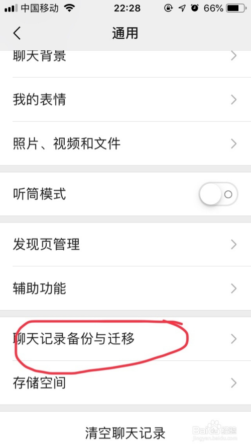 “通用”页面划到底,会看到“聊天记实备份与迁徙”设置,点击进入