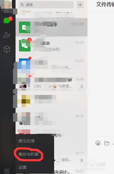 弹出备份与恢复界面,点击备份聊天记实至电脑