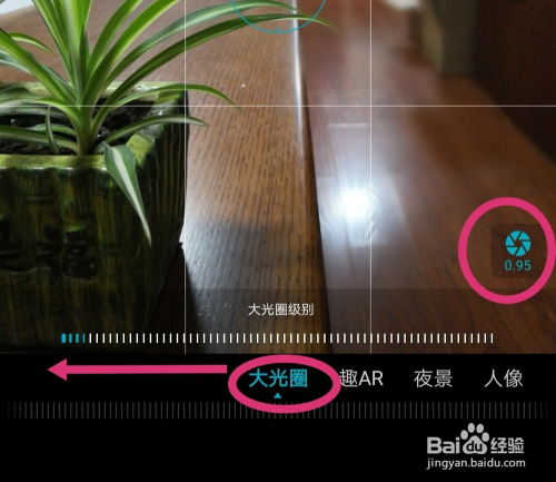 打开相机,找到大光圈,标的目的左拖动光圈变大。当数值变小申明光圈变大,数值变大光阴圈是变小的,这点必然要记住。