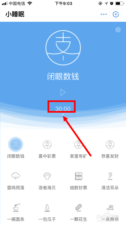 系统默认的支付宝 小睡眠 的按时封闭时候为30分钟,也就是说设定音乐之后,系统会主动播放,30分钟后会主动封闭。这个时候可以更改吗?谜底是可以更改,下面就跟大师分享一下方式。