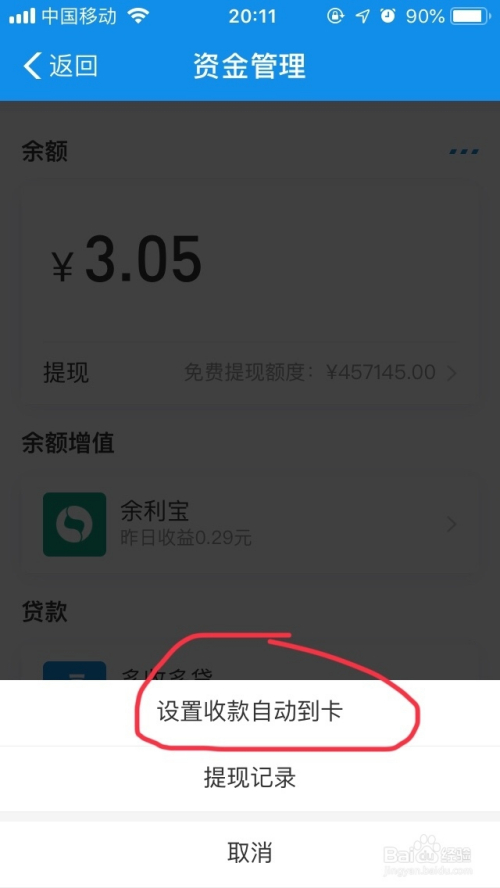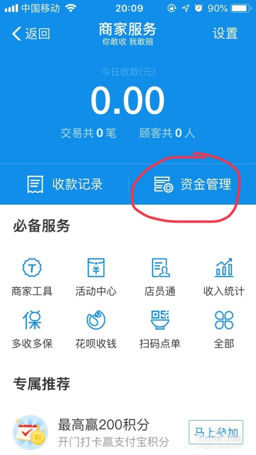 在商家办事界面,点击资金办理