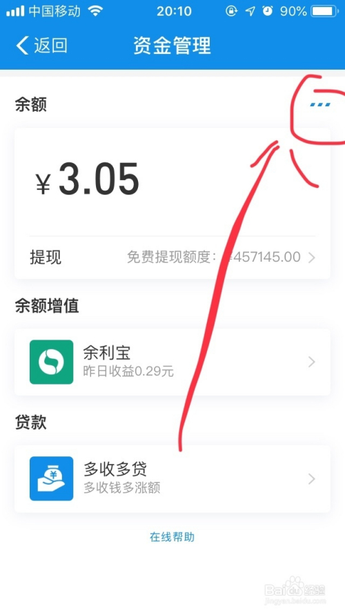 在资金办理界面,打开右上角三个点