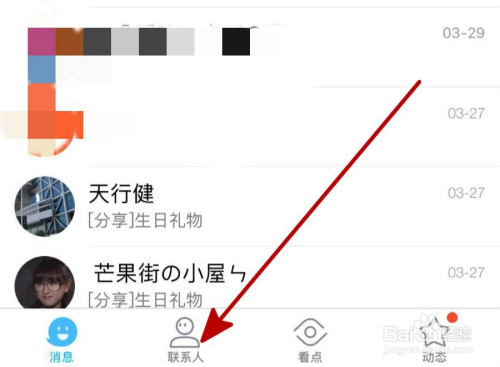 在打开的QQ本家儿界面中点击下方东西栏中的“联系人”,如下图