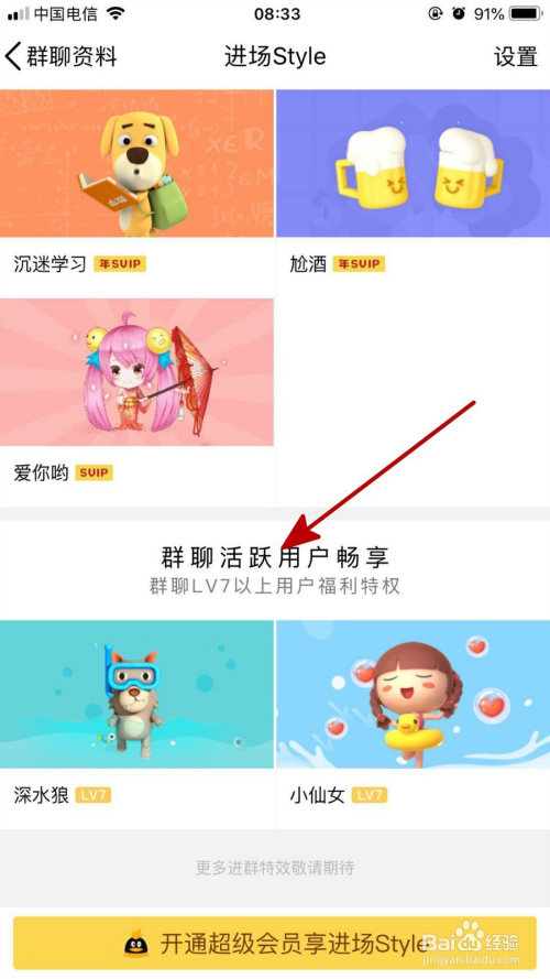进入后我们会看到有良多潮品保举,可是这些都需要开通 超等会员才可以设置当作功,可是我们一向往下拉会看到有群聊活跃用户畅享一类,这一类只要你在群里活跃度到LV7就可以免费享了。如下图