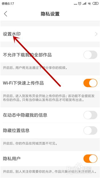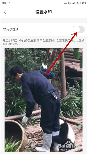 然后可看到【显示水印】是封闭的,我们点击后面的选择开关。