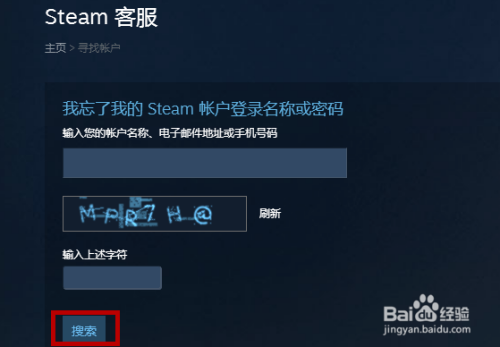 然后我们需要输入本身的账户名称或者邮箱、手机号码都可以,点击【搜刮】。