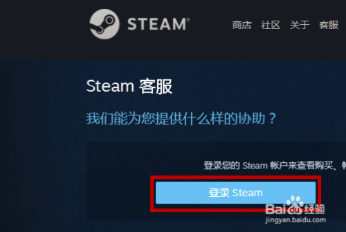 然后在客服里点击【登岸steam】。
