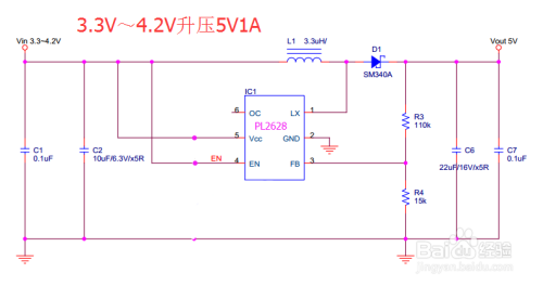 2,异步升压芯片PL2628,特点:效率遍及80%摆布,需要整流肖特基二极管。