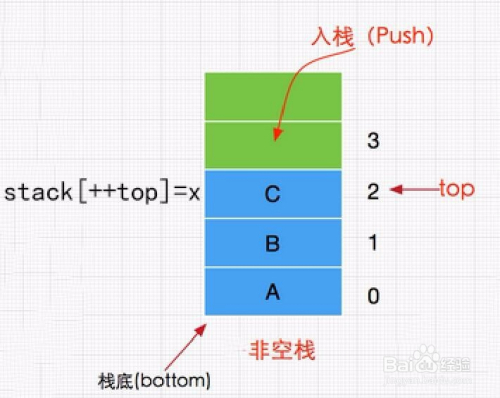 进栈操作:当栈没有满时,stack[++top]=x。