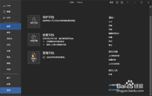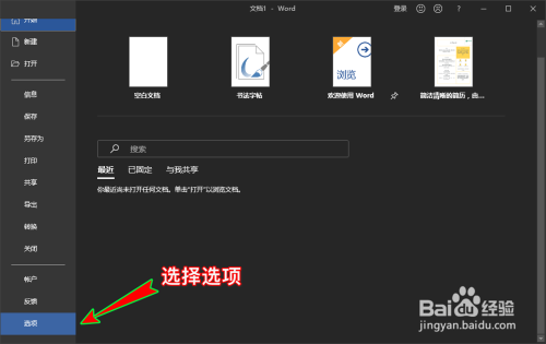 在“文件”菜单下找到并点击“选项”子菜单,点击后打开“word选项”弹窗。
