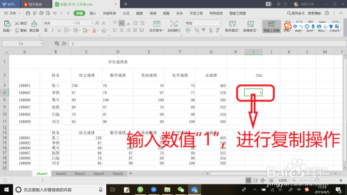 选中一个空白单位格(单位格格局为数值),在空白单位格中输入“1”的数值。然后复制这个输入“1”数值的单位格。
