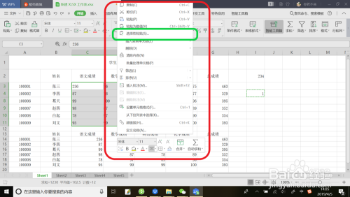 鼠标光标不要移出选中规模,然后单击鼠标右键,弹出菜单栏,在菜单栏中找到【选择性粘贴】菜单号令。