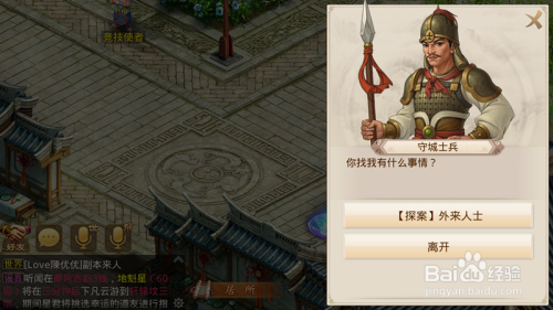 之后我们去找门口的士兵,一般都是南门,也就是地图下面这个守城士兵,点击两次,播放回忆哪些外埠人进城。