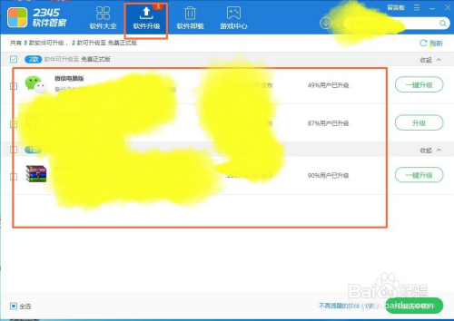 接着可以在软件进级中陈列的可以进级的电脑软件;