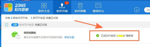 最后,当进级完该软件时就可以看到已当作功进级到XX最新版的提醒。