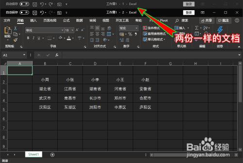 点击“新建窗口”后,我们就发现excel主动为我们打开了一个一模一样的新表格文档窗口了。
